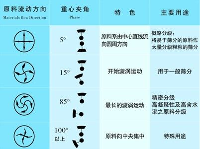 三次元旋振篩由直立式電機作激振源,電機上、下兩端安裝有偏心重錘,將電機的旋轉(zhuǎn)運動轉(zhuǎn)變?yōu)樗?、垂直、傾斜的三次元運動,再把這個運動傳遞給篩面。調(diào)節(jié)上、下兩端的相位角,可以改變物料在篩面上的運動軌跡。